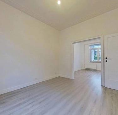 Le bien se compose d’un hall d’entrée avec WC séparé, d’un lumineux et spacieux séjour pouvant être facilement divisé afin de créer une seconde chambre de ± 13 m², d’une cuisine non équipée avec accès direct à une terrasse privative, d’une chambre de ± 10 m² et d’une salle de bain.