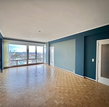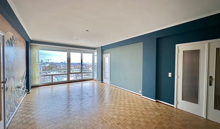 AUDERGHEM – Superbe appartement 3 chambres de ±121 m² situé au 10ᵉ étage d’un immeuble bien entretenu, à deux pas du métro Hankar. Il dispose d’un hall d’entrée avec rangements, d’un séjour lumineux de ±31 m², d’une cuisine équipée de ±9 m² donnant accès à une terrasse orientée Ouest de ±7 m².
